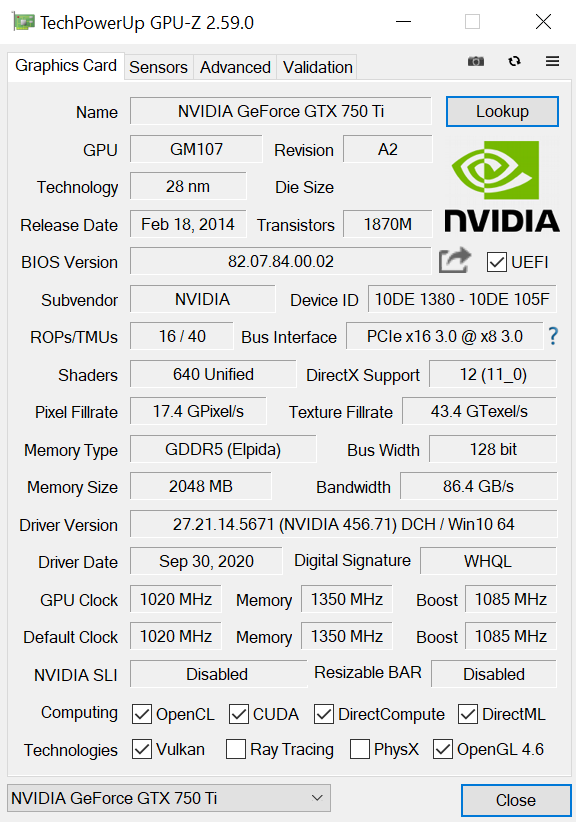 Dell NVIDIA GeForce GTX 750 Ti 2GB DDR3 PCe 2.0 Graphics Video Card Posted on April 29, 2024April 29, 2024 by admin https://www.techpowerup.com/gpu-specs/geforce-gtx-750-ti.c2548 https://www.ebay.com/itm/266789763620