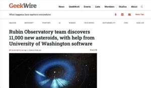 Rubin Observatory team discovers 11,000 new asteroids, with help from University of Washington software – 4/3/2026