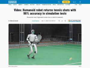 Video: Humanoid robot returns tennis shots with 96% accuracy in simulation tests – 3/17/2026